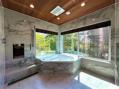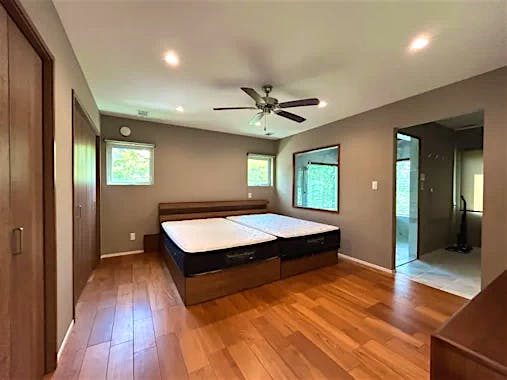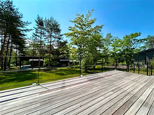 We present a sophisticated, recently built designer home in the "Asama Terrace" villa area, overlooking Mount Asama to the north and Mount Yatsugatake to the south. Upon entering the imposing building with a two-car inner garage, you'll be amazed by the spacious living room (approximately 36 tatami mats) with a 7-meter ceiling and meticulous design, down to the finest details. The combined living room, kitchen, and dining area is approximately 56 tatami mats, and the second-floor gallery transforms into a concert hall when you play the piano. On the second floor, separated by a void, are the master bedroom and guest room. The master bedroom features a luxurious bathroom with a large window, and the guest room's balcony overlooks Mount Asama, the symbol of Karuizawa. The spacious lawn on the southeast side of the building is fenced with a 150cm fence, making it suitable for use as a dog run, allowing dogs to run free. Enjoy a special time surrounded by Karuizawa's abundant nature. We look forward to your visit.