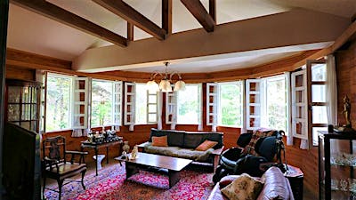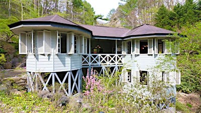 国道18号を離山の麓へ向かう閑静な場所に個性的なフォルムの別荘が佇んでいます。1,500㎡を超える敷地内には、花々や紅葉などが楽しめる多くの木々が植えられており四季の移ろいを感じられ、敷地奥には2台分の屋根付カーポートも備えられております。また、建物内部は外壁と同じ白を基調とした居室スペースと板張りのリビングダイニングが対照的で非日常性を演出しています。緑豊かな森を見渡す屋根付サンデッキや浴室サウナなどリゾート気分満載の別荘をぜひ一度ご覧ください!