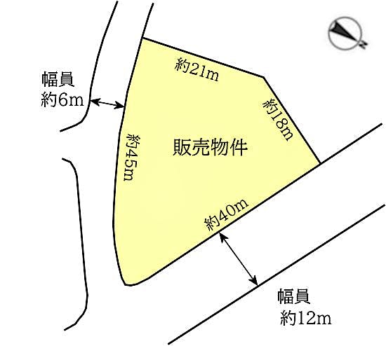 南東側幅員約6m 北東側幅員約12m