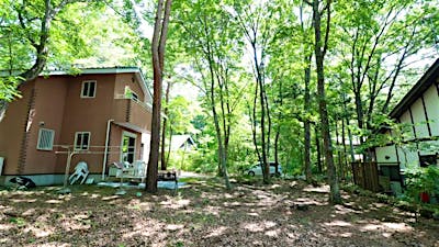 異国情緒漂う御影用水温水路まで徒歩圏のロケーション。 近くにはカフェやレストランも点在していて、お散歩がてらに楽しむことができます。 近隣の御代田町や佐久市へのアクセスも良く、定住にも適した環境です。 建物も4LDKと部屋数が充実しており、吹き抜けのリビングが別荘らしさを演出しています。