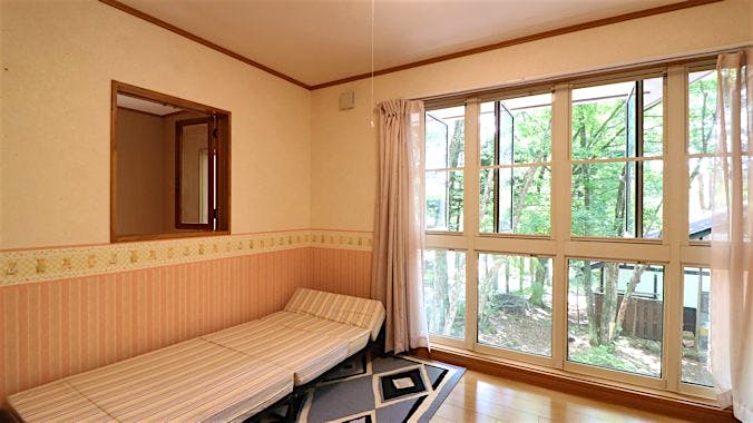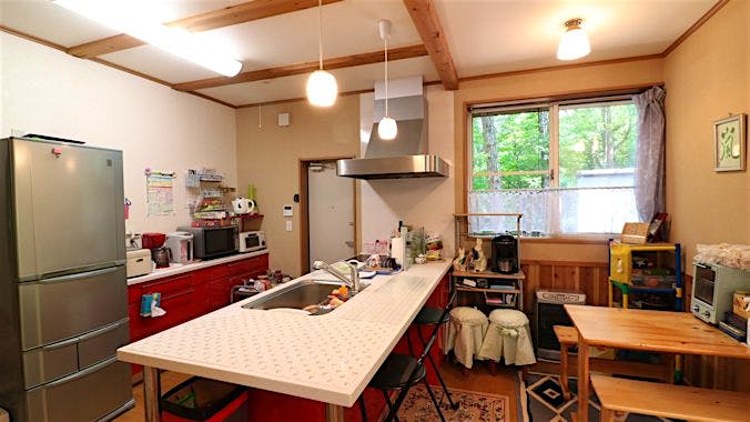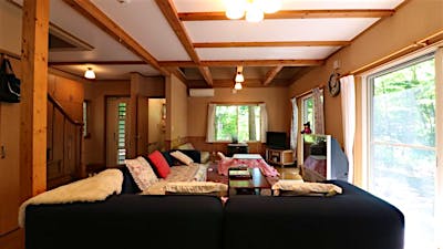 The property is located within walking distance of the exotic Mikage Irrigation Canal. There are also cafes and restaurants nearby that you can enjoy while taking a stroll. With easy access to the nearby towns of Miyota and Saku, the property is also ideal for permanent residence. The building has a generous number of rooms, with a 4LDK layout, and the open-ceiling living room gives it a villa-like feel.