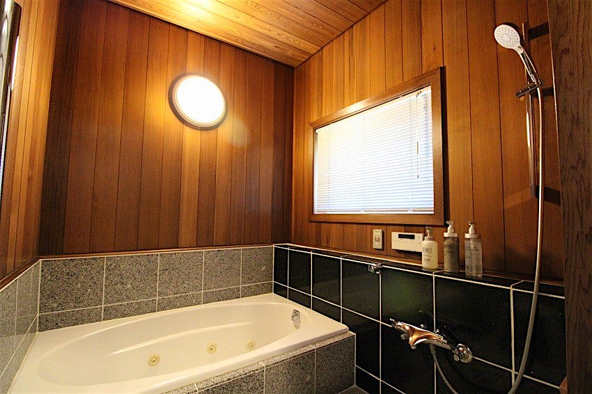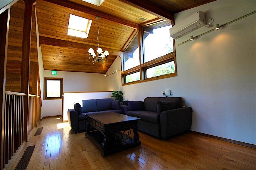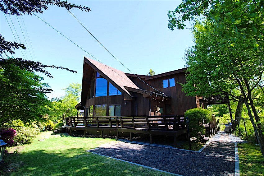 The building's distinctive window shapes are also beautiful. Originally built as a model home, it is now used as a rental villa. This luxurious villa is made of Western Red Cedar. Although it is over 20 years old, it remains in excellent condition. Common Grounds is approximately 700 meters away. Supermarket Tsuruya is approximately 1 km away. There are also convenience stores, drugstores, and home improvement stores within walking distance, making it a good choice for those who don't drive.