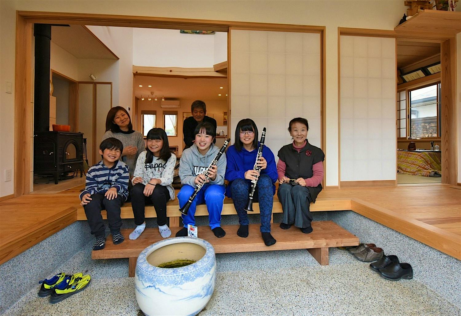 旧家の古材を再利用し、建替えの寂しさを喜びに変えた家づくりとなった。