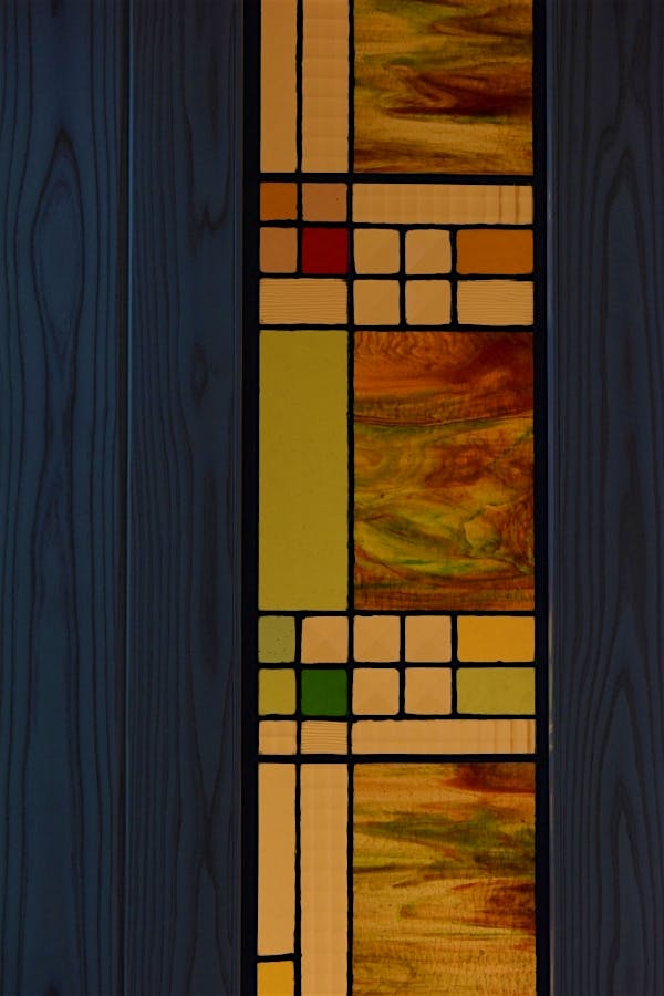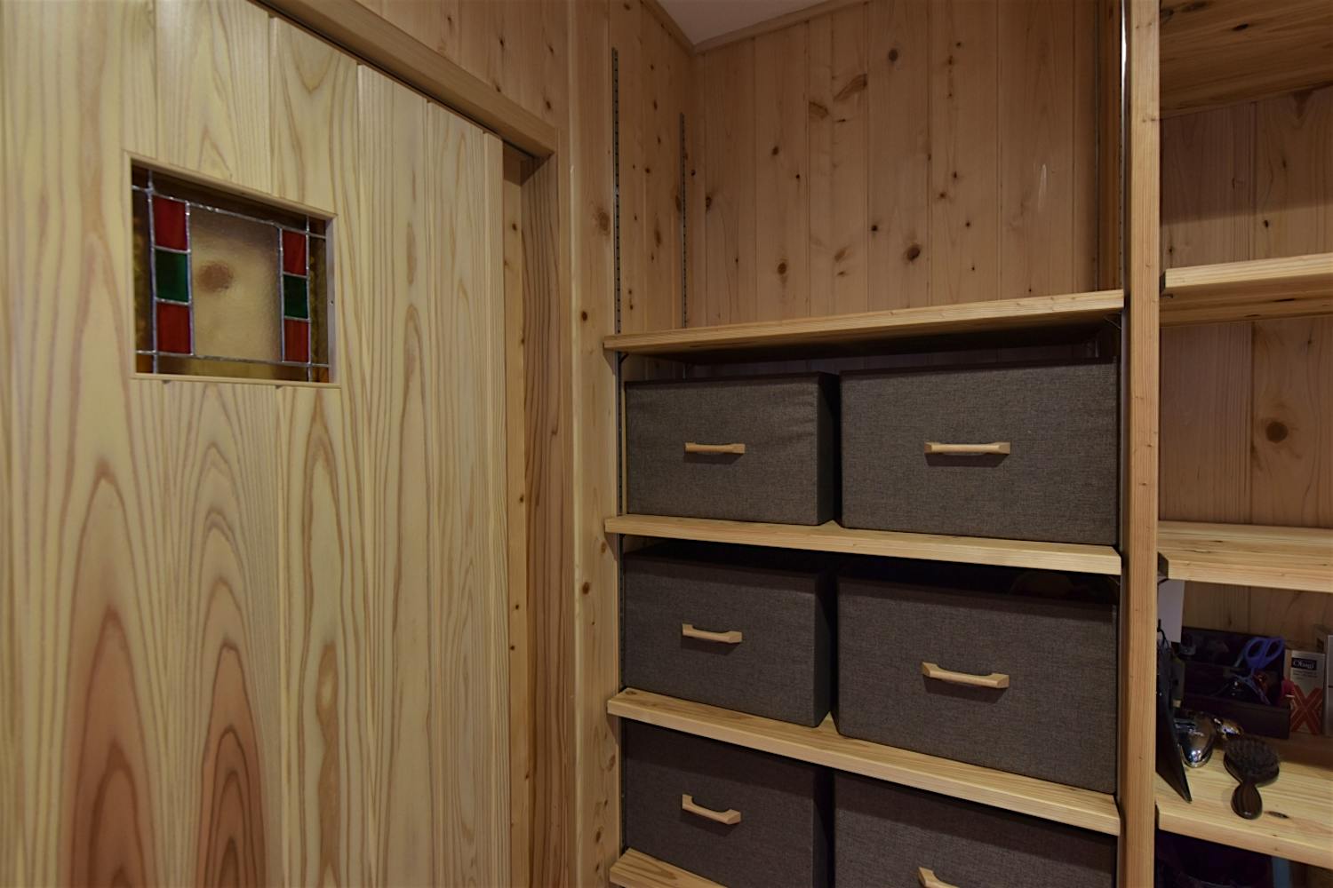 水回りの建具には、K様自作のステンドグラス。優しく光を通す。