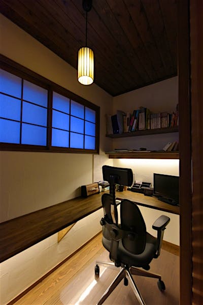 キッチン前を通り抜けると、格子の建具の趣ある空間が。ご主人様専用の書斎スペース。