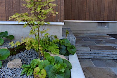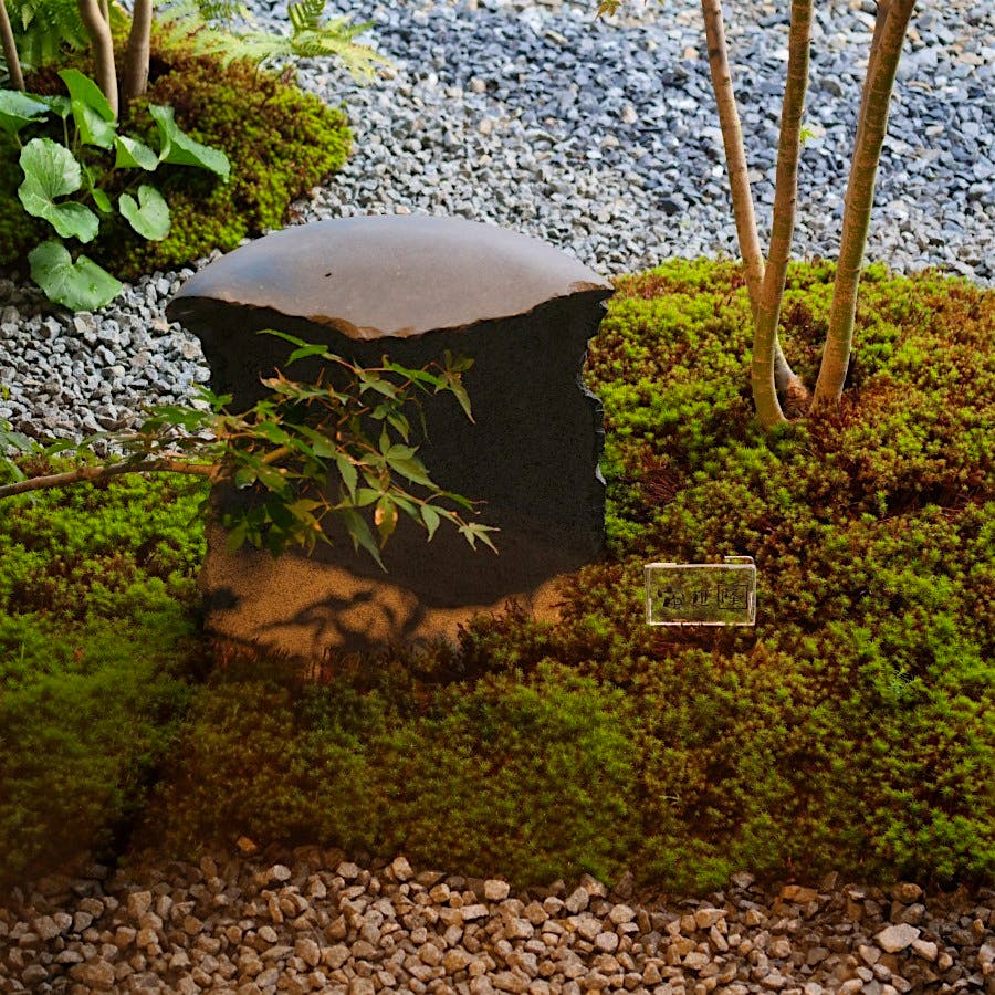 中庭にはお知り合いの作家さんから譲って貰った庭石が鎮座。苔生している感じも美しい。
