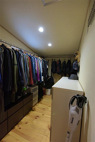 お母様のプライベートスペースは、リビング・キッチン・寝室を機能的にまとめた空間設計。大容量のクローゼットを2つ設け、夏物・冬物を分けて収納されている。