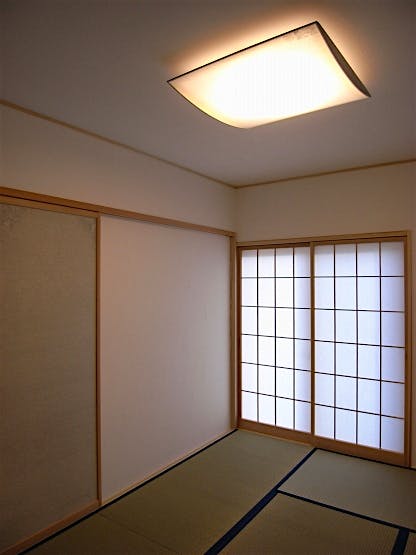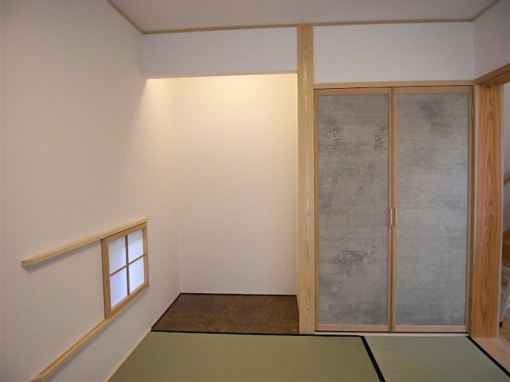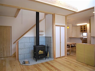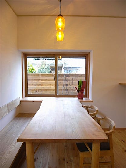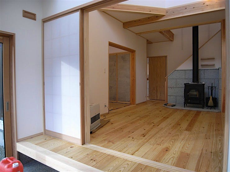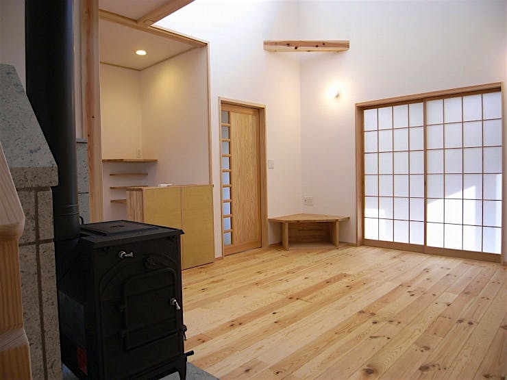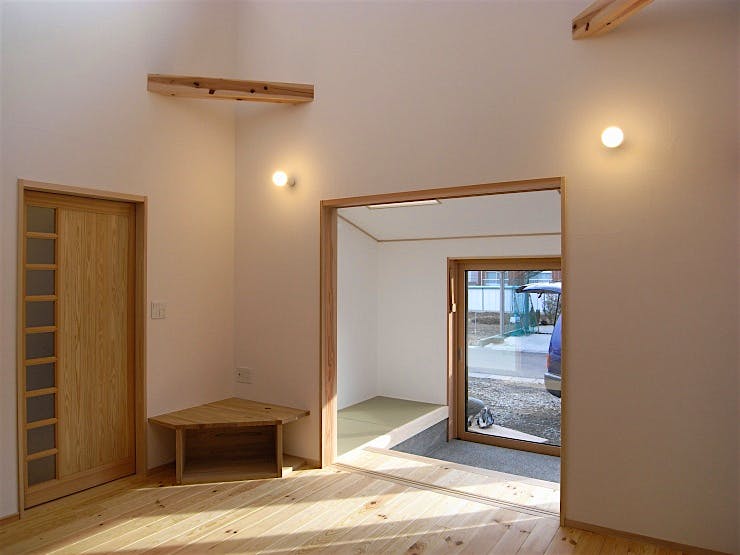 土間サロンの畳ベンチでくつろぐ家 長野市U様邸
