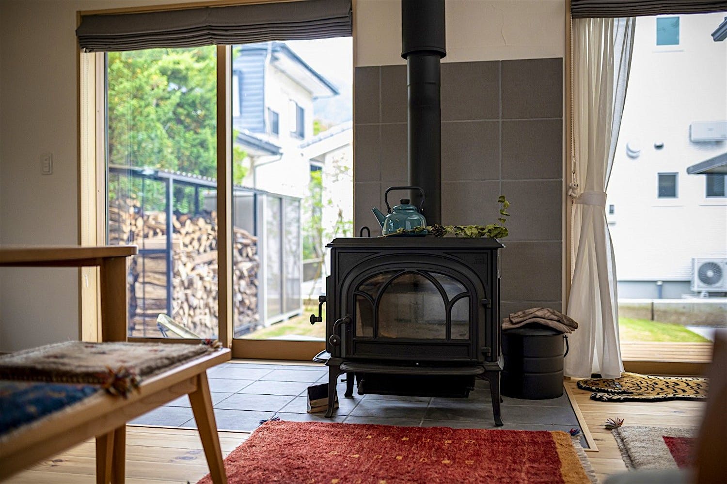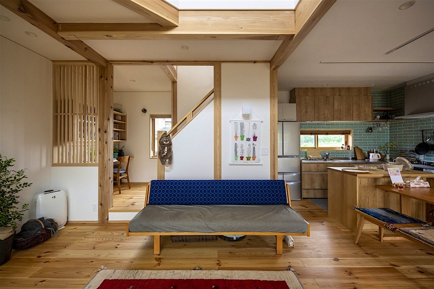 土間サロンのサッシはフルオープンに。バツグンの開放感。