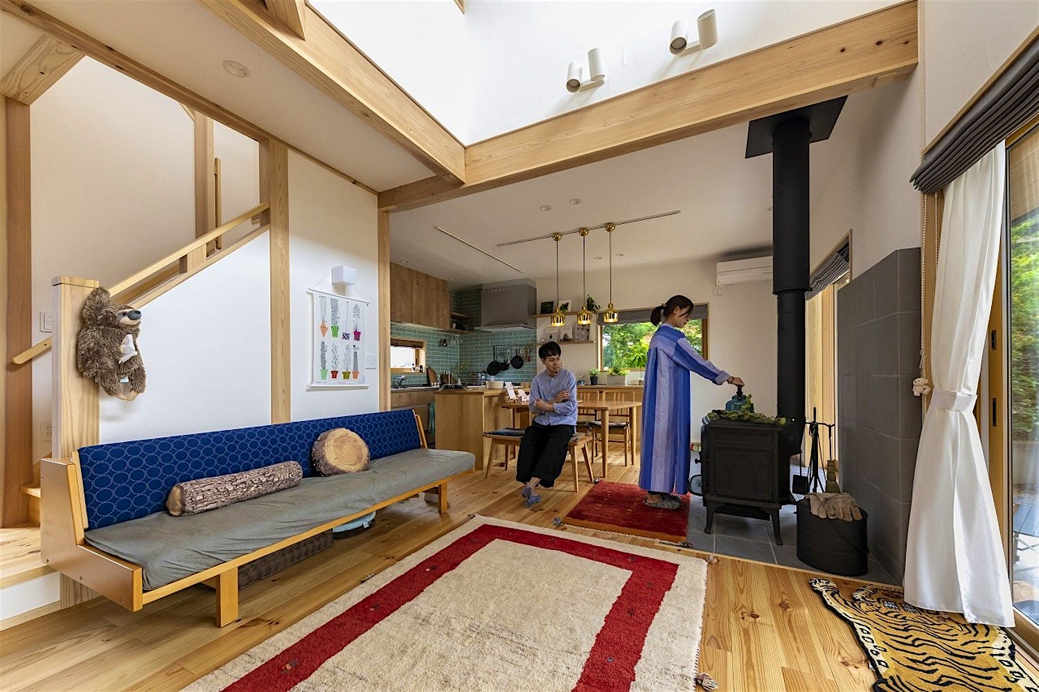 庭に面したウッドデッキや土間サロン続きの外土間。中と外を繋ぐ曖昧空間に。
