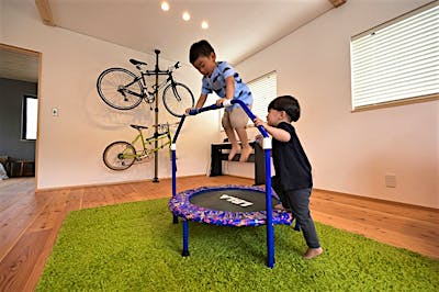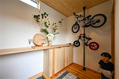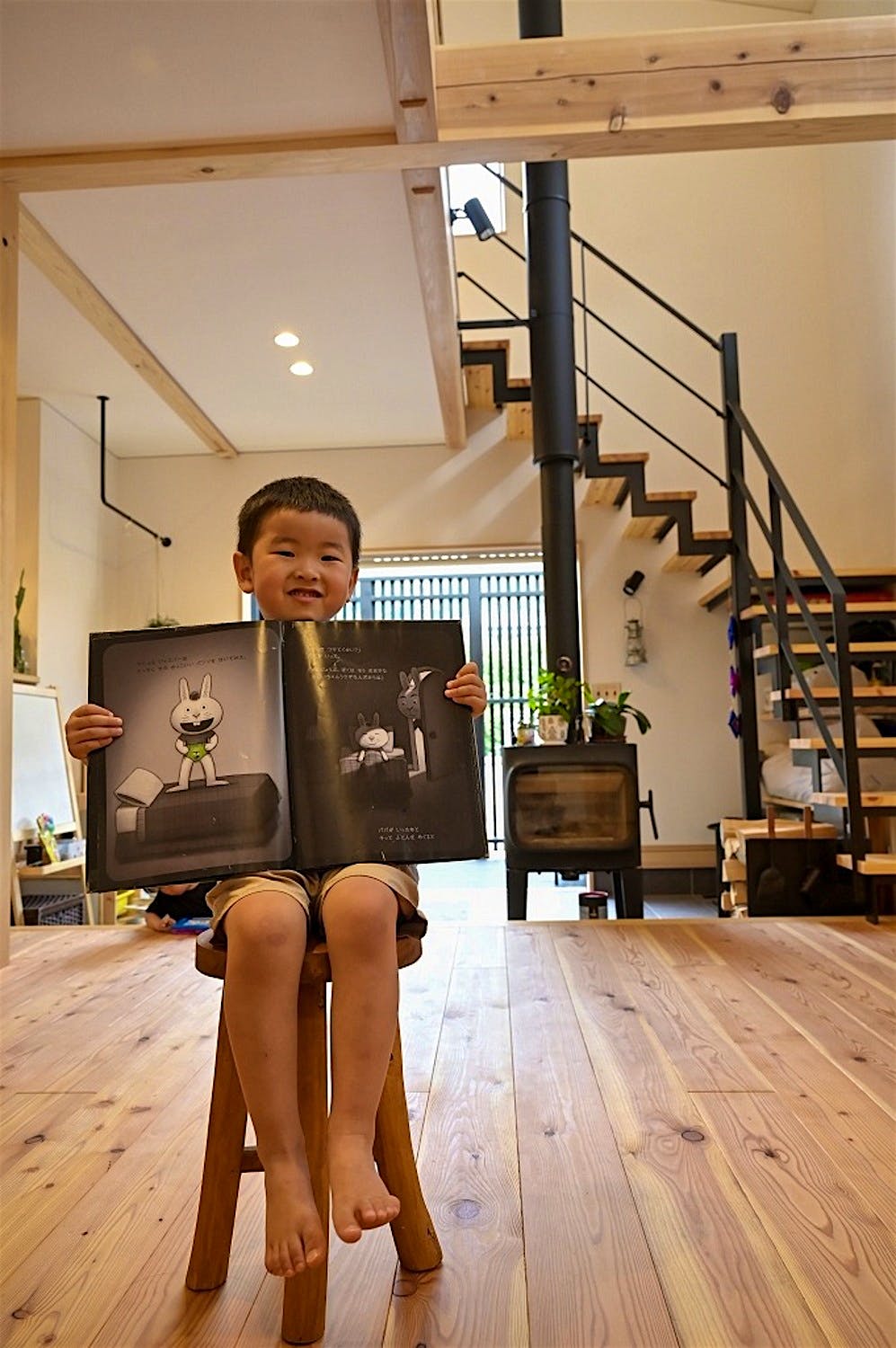 土間サロンはもっぱらお子さんたちの遊び場。工作やおやつで汚れてもお掃除しやすく、大人も子どもものびのび過ごせる。