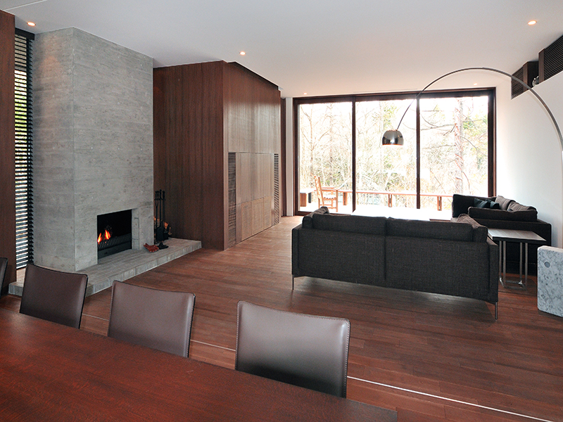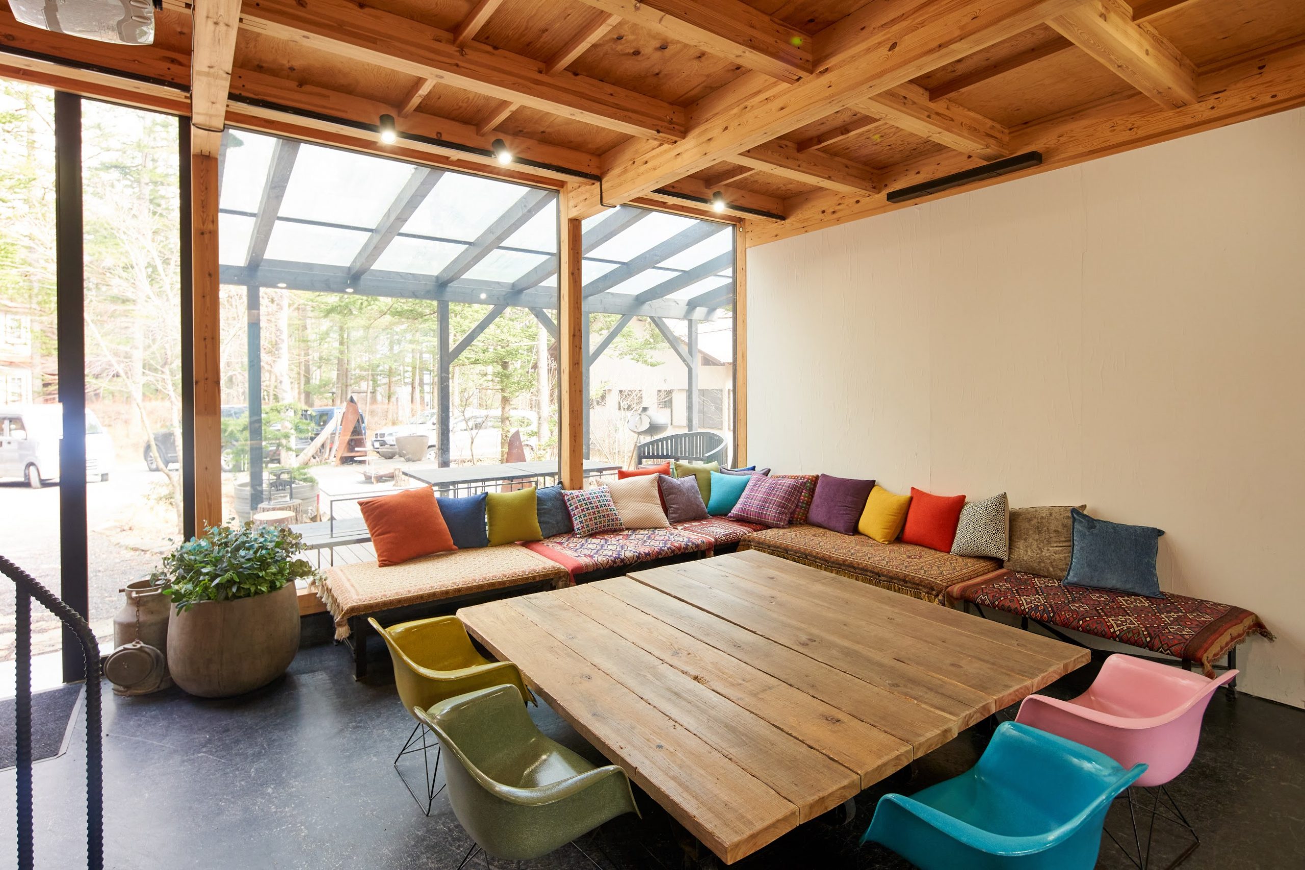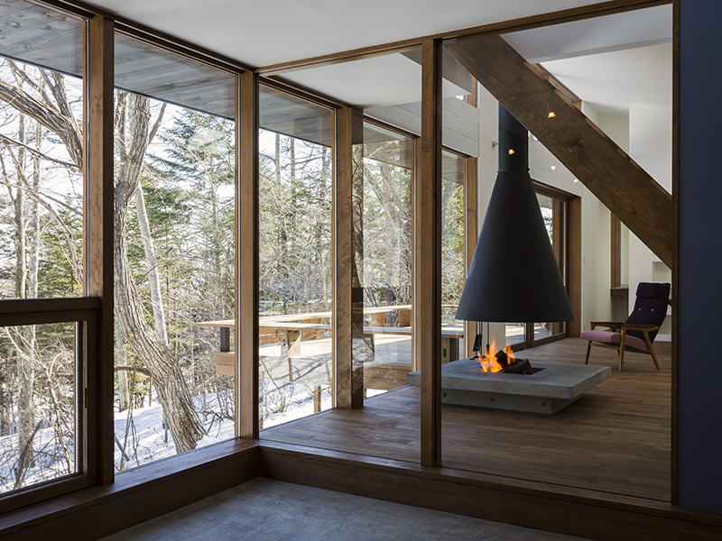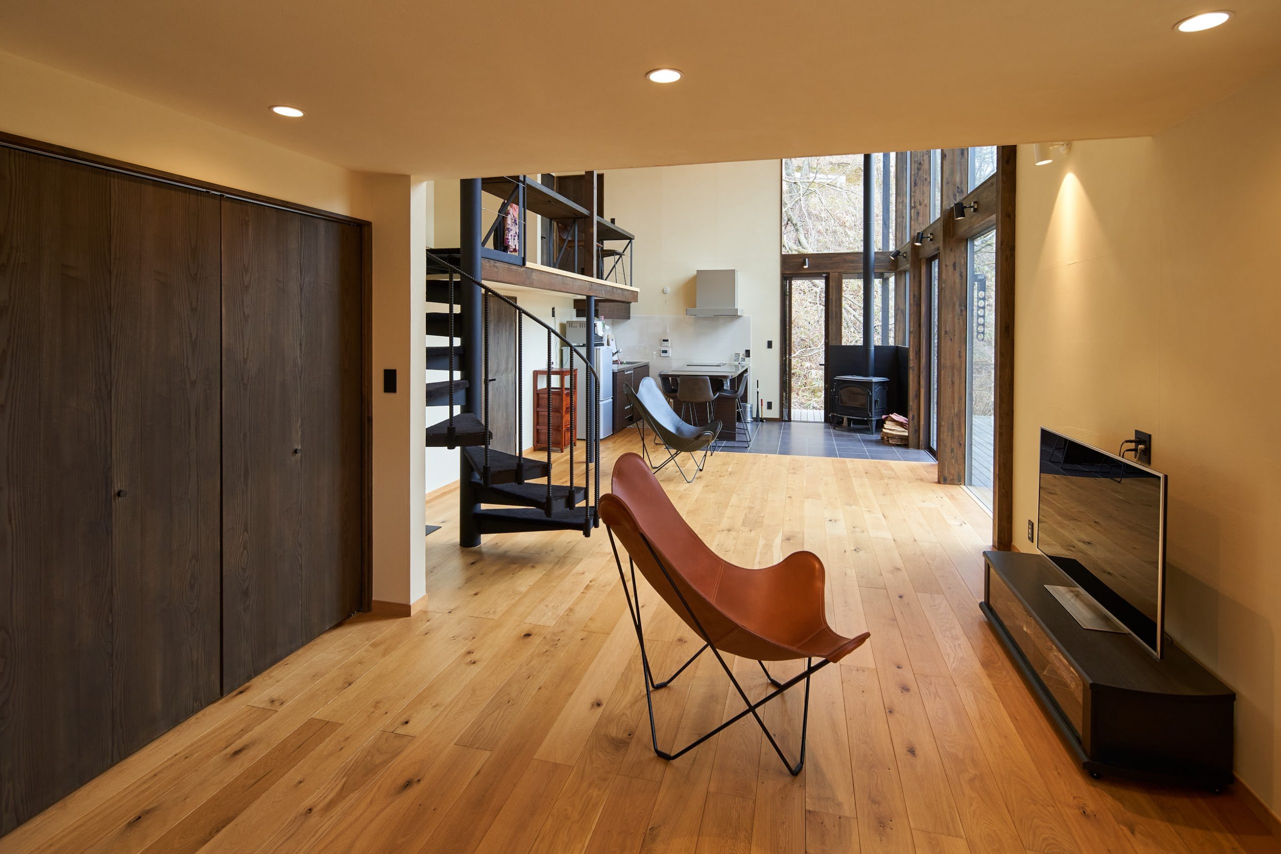 若世帯リビングの隣は、親世帯と共有の土間サロンにつながる。建具をフルオープンにすると広々とした大空間に。