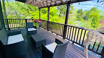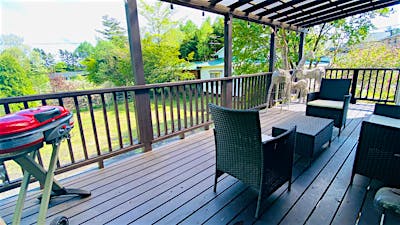 増改築あり(内装、水回り等)・定住向け・庭広々・ウッドデッキ・ハイサッシ 木造 亜鉛メッキ鋼板葺き 2階建て 公営水道 中部電力 個別浄化槽 プロパンガス *土砂災害警戒区域内 *道路後退面積有り