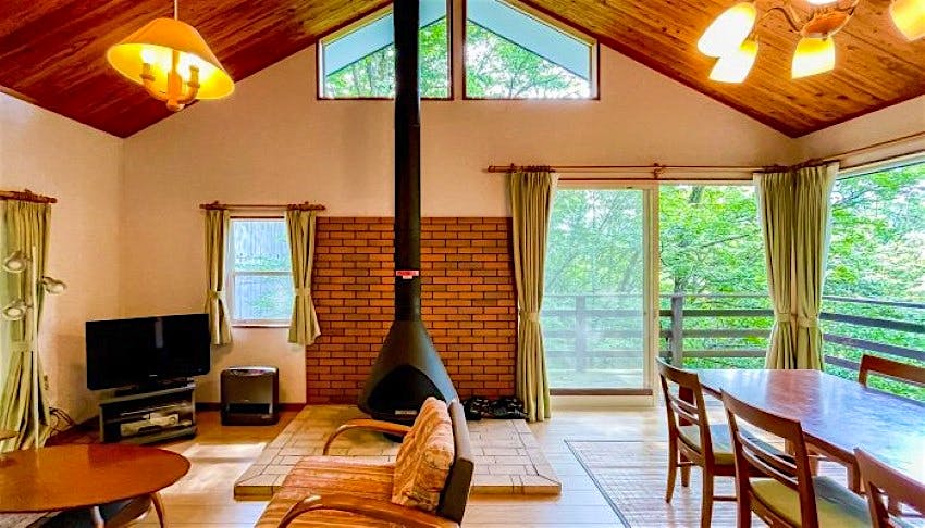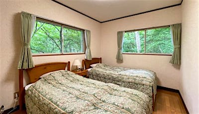 旧軽井沢の三笠パークの少し奥の方になりますが、傾斜地に建つ中古別荘です。貸別荘として貸されていました。家具はほとんど揃っていますが、冷蔵庫とシーツがありませんのでご自身でそろえてくださいね。(もしかしたら他にも足りないものがあるかもしれません)建物内はそのまま使える状態ですが、デッキが少し傷んでいるところがありますので修理は必要となります。