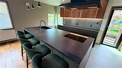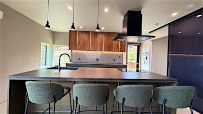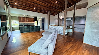 中軽井沢エリアに位置する、細部まで売主様のこだわりが詰まった2023年竣工の戸建です。 高気密・高断熱、トリプルガラス、24時間換気システムで通年快適にお過ごしただけます。 キッチンから浴室までつながる回遊動線。ビルトインガレージには車2台分駐車可能で、EV充電設備も完備。1階にはシミュレーションゴルフの趣味部屋もございます。