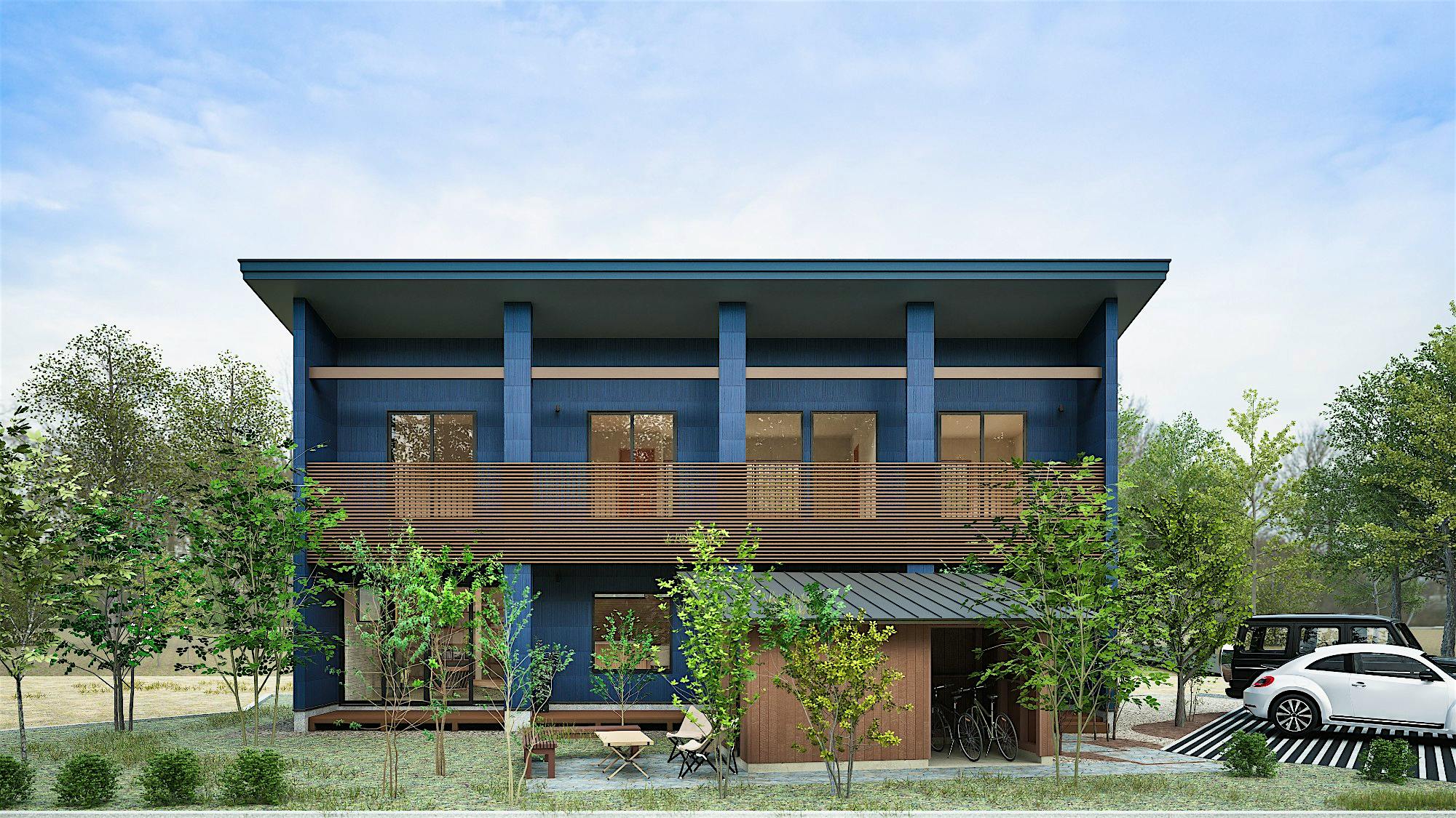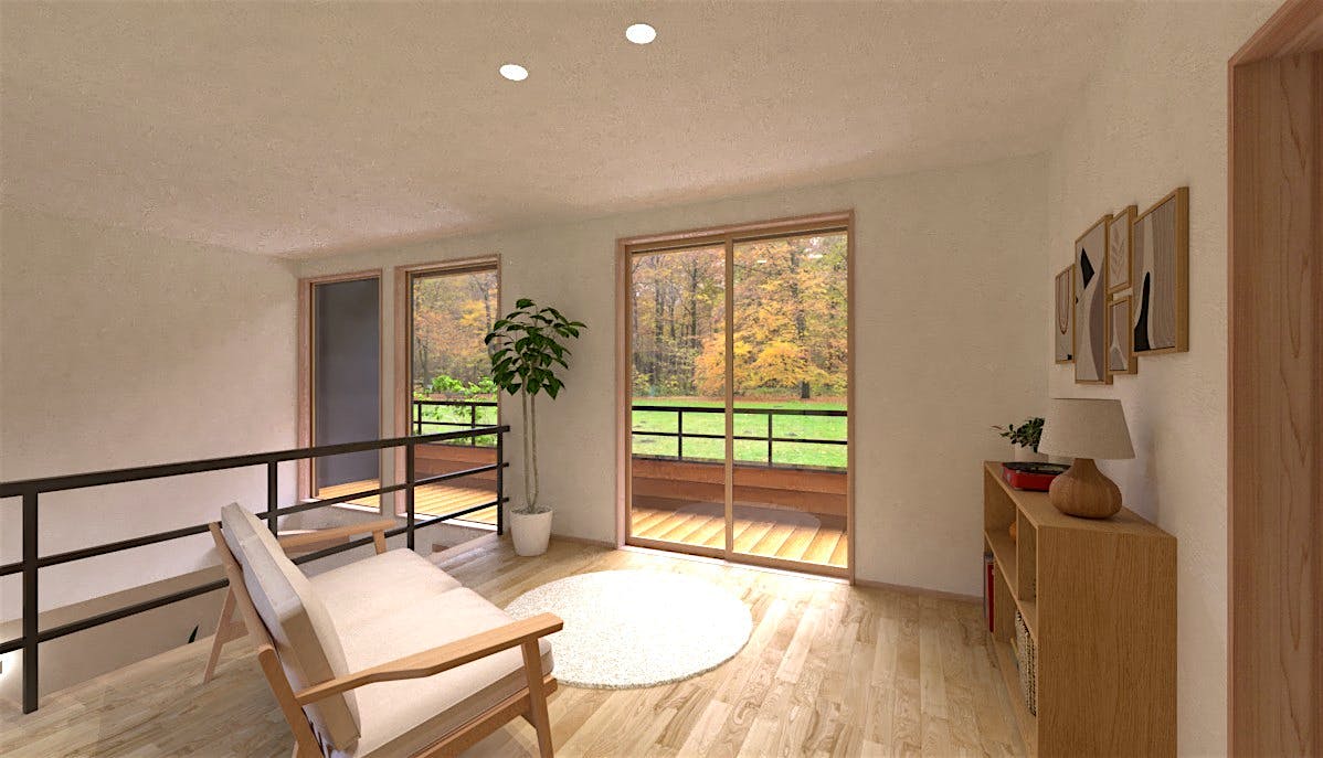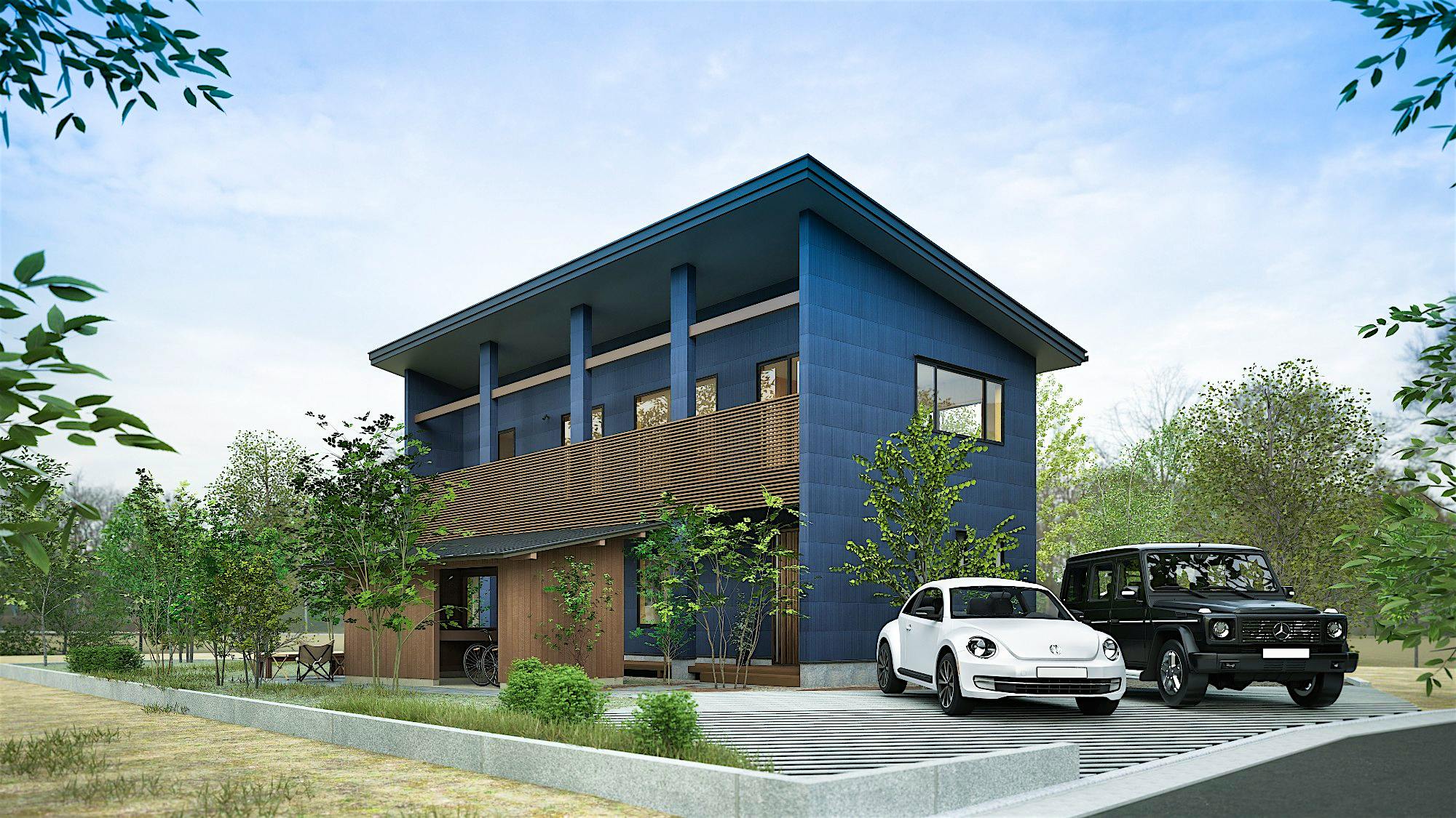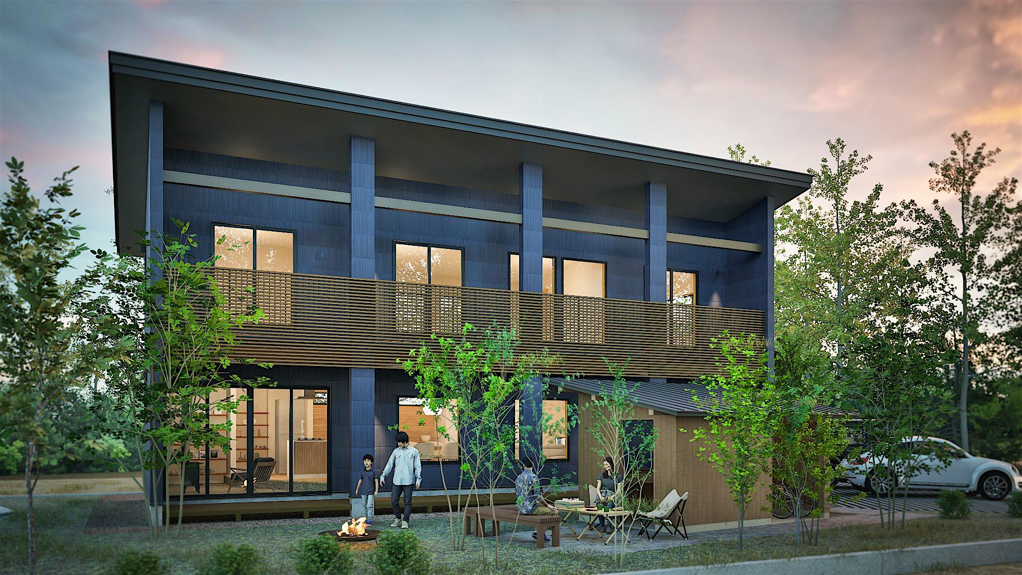 日々の暮らしの中に、自然と寄り添う時間を散りばめた住まい。各居室を南側に配置し、室内が陽だまりに包まれるように空間を設計。土間サロンから続くデッキテラスは、まるでセカンドリビングのように過ごせる場所に。