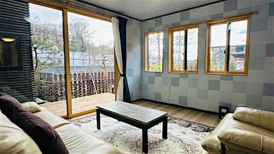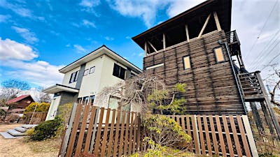 中軽井沢の中心部にある母屋+別棟の中古別荘です。見晴らしテラスから見える新幹線は迫力があり、電車好きの方必見です!別棟は秘密基地のような空間です。屋上ではBBQを楽しむこともでき、素敵な別荘ライフをお過ごしいただけます。