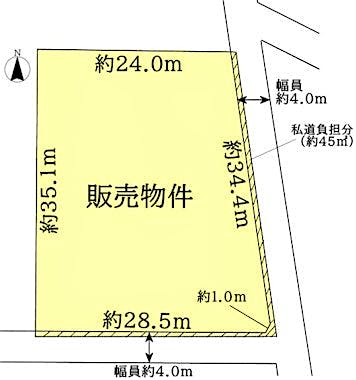 南側幅員約4.0m(私道)、東側幅員約4.0m(私道)