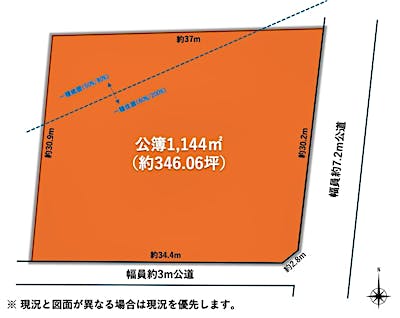 東側幅員約7.2m公道に約30.2m接道 南側幅員約3m公道に約34.4m接道